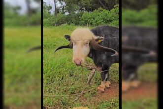 Búfalo amarrado pelo focinho foi resgatado em “fábrica de filhotes”