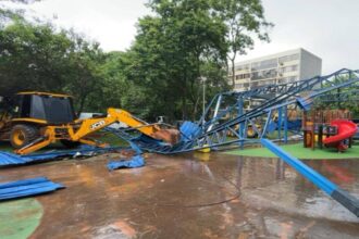 A derrubada de uma construção em área pública ocupada irregularmente por uma escola particular, Ursinho Feliz, na EQS 112/312, na…