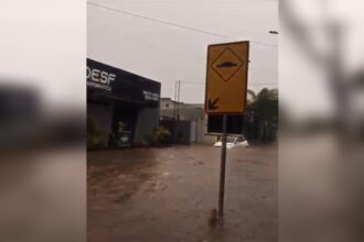 Vídeo: correnteza deixa carro quase submerso e inunda loja no DF