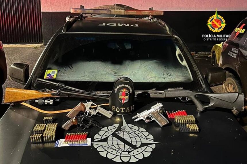 Dois homens foram presos em flagrante na noite desse domingo (13/1), após abrirem fogo contra uma equipe da Polícia Militar do Distrito Federal (PMDF) em Brazlândia. Com a dupla, foram apreendidas cinco armas de fogo e centenas de munições.