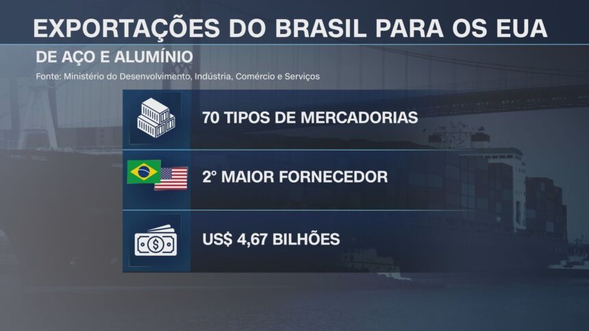 Segundo o Ministério do Desenvolvimento, Indústria, Comércio e Serviços (MDIC), o Brasil exportou mais de 70 tipos de mercadorias de aço e alumínio para os Estados Unidos. Os brasileiros são o segundo maior fornecedor desses materiais para Washington, vendendo mais de US$ 4 bilhões do produto.